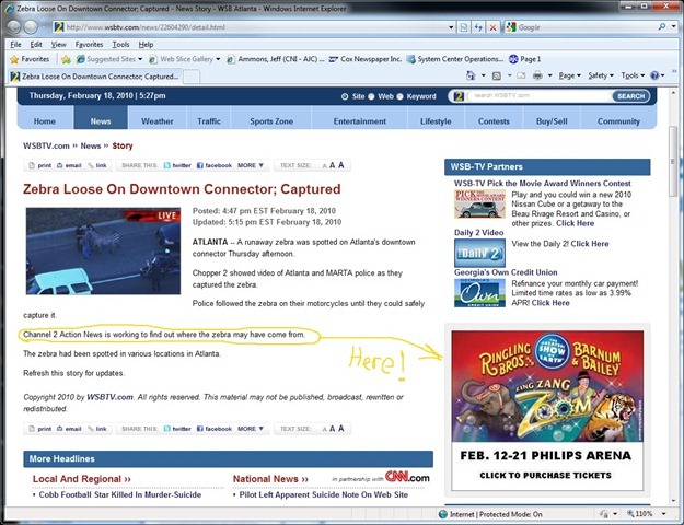 Zebra Found Monday, 01 February 2010 By Jeff Ammons Tags: Circus Humor Zebra My Photos Visit my art on Pixels Learn more Sometimes the answers are close at hand. UPDATE: Yep. That was it.